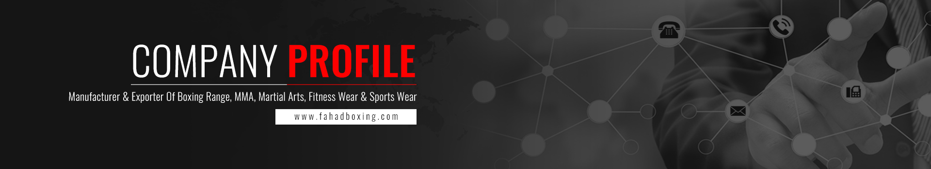 Fahad Boxing is Operational since 2000. The Company has developed its repute as a Manufacturer and Exporter of Quality Boxing and Martial arts equipment & Uniforms in the global market. This was only possible due to our high quality products, strong commitment, professionalism and specialization in this Field. Our products are produced according to the most modern requirements of the market.Fahad Boxing is Operational since 2000. The Company has developed its repute as a Manufacturer and Exporter of Quality Boxing and Martial arts equipment & Uniforms in the global market. This was only possible due to our high quality products, strong commitment, professionalism and specialization in this Field. Our products are produced according to the most modern requirements of the market.